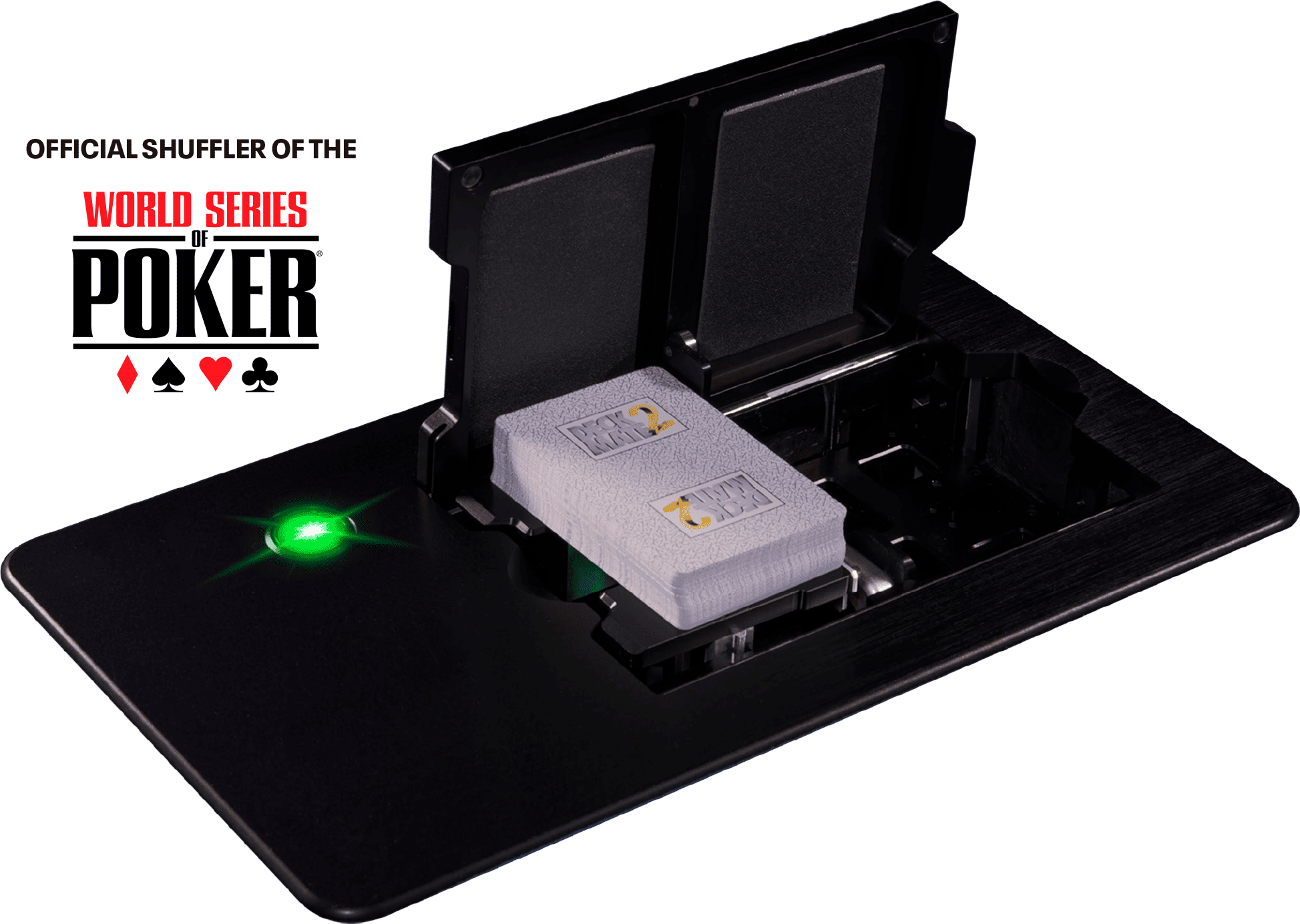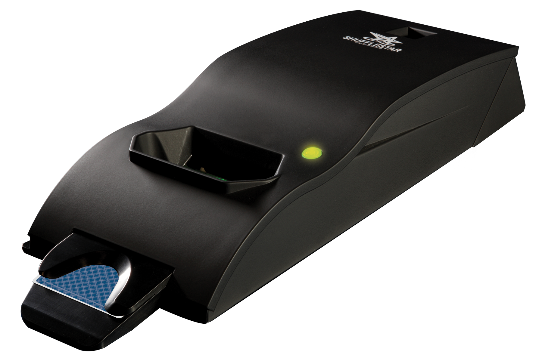 Su diseño estilizado mejora el impacto del barajador en la mesa de juego y reparte sin esfuerzo hasta tres cartas por segundo.