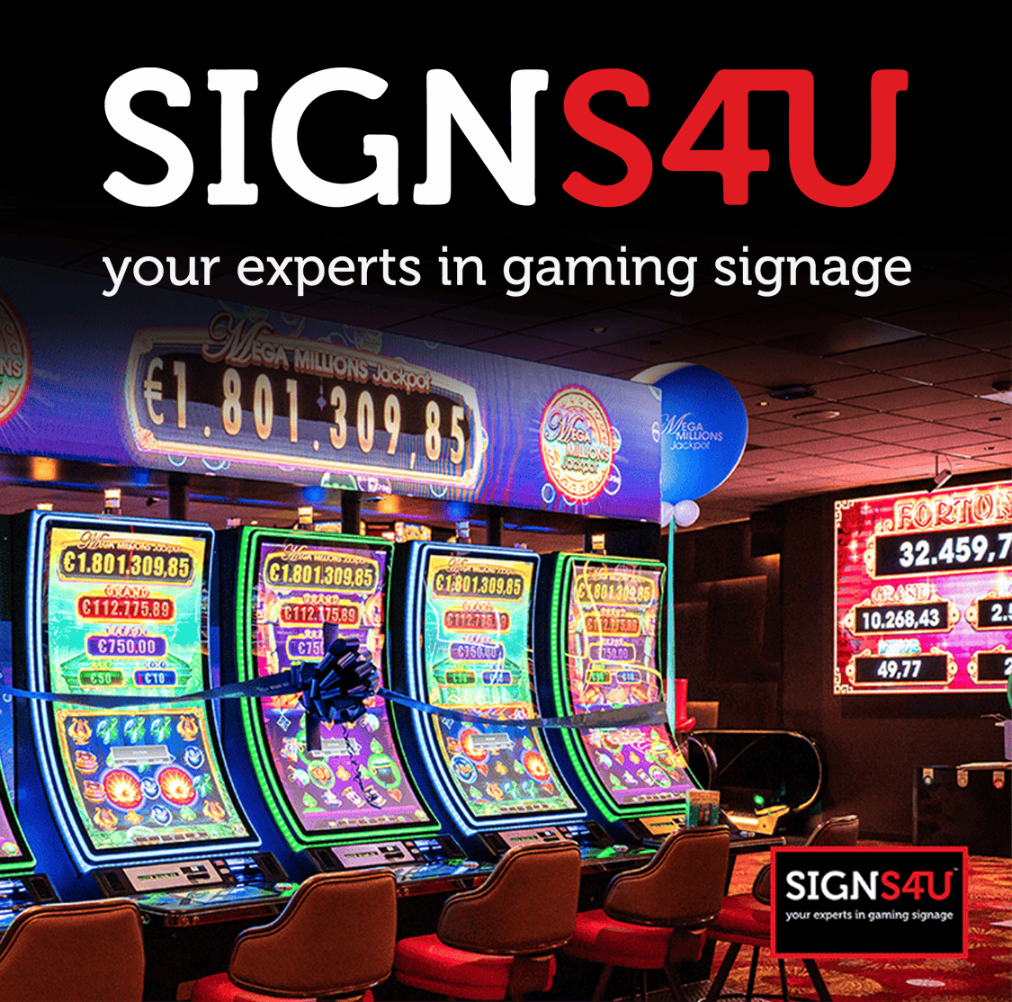 Signs4U es nuestro proveedor de referencia para hacer los signs más novedosos y atractivos del mercado. Su gran variedad de formatos, su calidad gráfica y el impecable estado de sus acabados hacen de los productos de Signs4U unos accesorios imprescindibles para cualquier sala de juego.